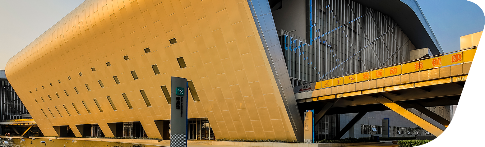 場館以“山水相依、五省通衢”為理念,采取山環(huán)水抱、山水相依的規(guī)劃格局